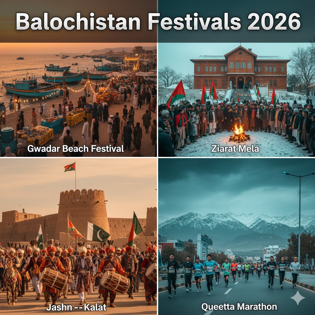 Every district — Gwadar, Kalat, Khuzdar, Ziarat, Sibi, Quetta, and Kech — holds an annual celebration expressing its people’s identity. Fishermen honor the sea, shepherds sing in mountain valleys, and artisans revive embroidery patterns known to their ancestors.