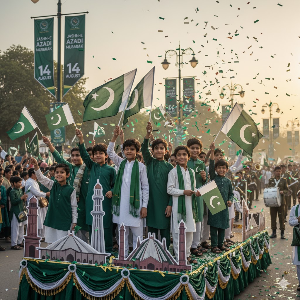 Independence Day marks Pakistan’s freedom from British rule in 1947. The day is celebrated nationwide with flag hoisting, parades, and fireworks. Major cities like Lahore, Karachi, and Islamabad illuminate in green and white.